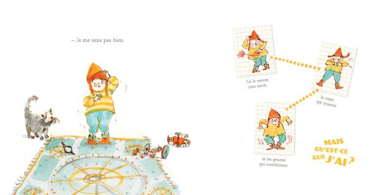 P’tit Bonhomme est tout flagada… C’est qu’il a attrapé une bien étrange maladie ! D’autant plus étrange que personne ne veut lui dire de quoi il s’agit ! Ni son papa, ni sa maman, ni les grands-de-l’abribus, ni les forains ne lui expliquent ce qu’il a : « P’tit Bonhomme, ta drôle de maladie, on la connaît. On sait ce que tu as, mais c’est un secret et un secret, ça ne se dit pas, ça se découvre ». Allons bon ! À la fois gai et triste, le ventre tout serré, le cœur qui yoyotte et les genoux qui tremblotent, P’tit Bonhomme en a assez ! Il retourne alors là où tout a commencé… dans la clairière où se trouve P’tite Bonnefemme…
